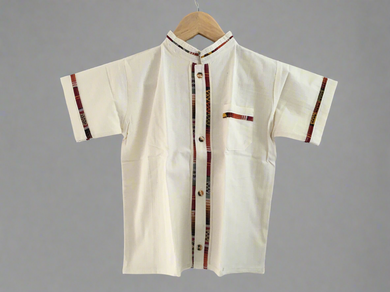 Boy's Traditional Handmade Mexican Guayabera Shirt - Beige - Off White